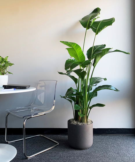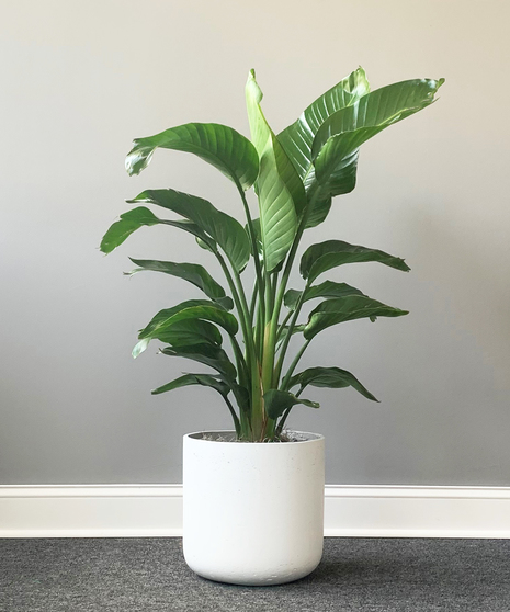 Gift yourself or the plant lover in your life a bird of paradise plant. This lush, tropical plant has large dark green leaves to bring life to any location! Available in a modern sleek ceramic or lightweight newpro pot.