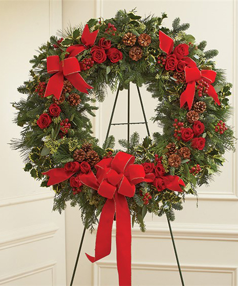 Send these gorgeous Christmas flowers to the service of your loved one to celebrate their beautiful life. Your florals along with a touching card message will warm their family's heart during such a difficult time. Your special tribute will be delivered directly to the funeral home in coordination with the funeral director.