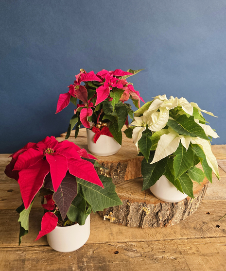 Please note: Poinsettia colors are designer’s choice and may include light pink, hot pink, red, or white based on availability and freshness. Each trio is crafted with care, making every Merry Minis set uniquely joyful.