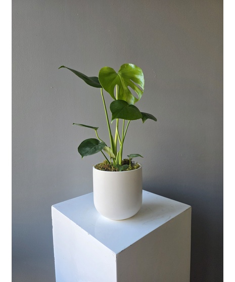 Available with either a Bird of Paradise or Monstera plant, this piece offers dramatic leaves and lush growth that instantly elevates home or office décor. The clean planter and vibrant greenery create a minimalist look that fits beautifully in modern, coastal, or contemporary interiors.