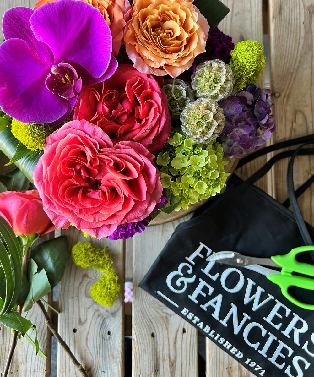 Discover the magic of transforming stems into captivating take-home arrangements. Our experienced team will guide you through various techniques, from basic floral compositions to advanced designs, teaching you the fundamentals of color, balance, texture, and shape.