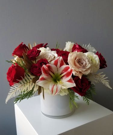 Traditional Christmas flowers and plants include: Poinsettias, amaryllis, red roses, holly, ivy, mistletoe, and Christmas cactus. However, you don't have to stick with tradition when you send a floral gift for Christmas! We also love centerpieces and bouquets made with lilies, chrysanthemums, tulips, and elements like pine cones and fir boughs.